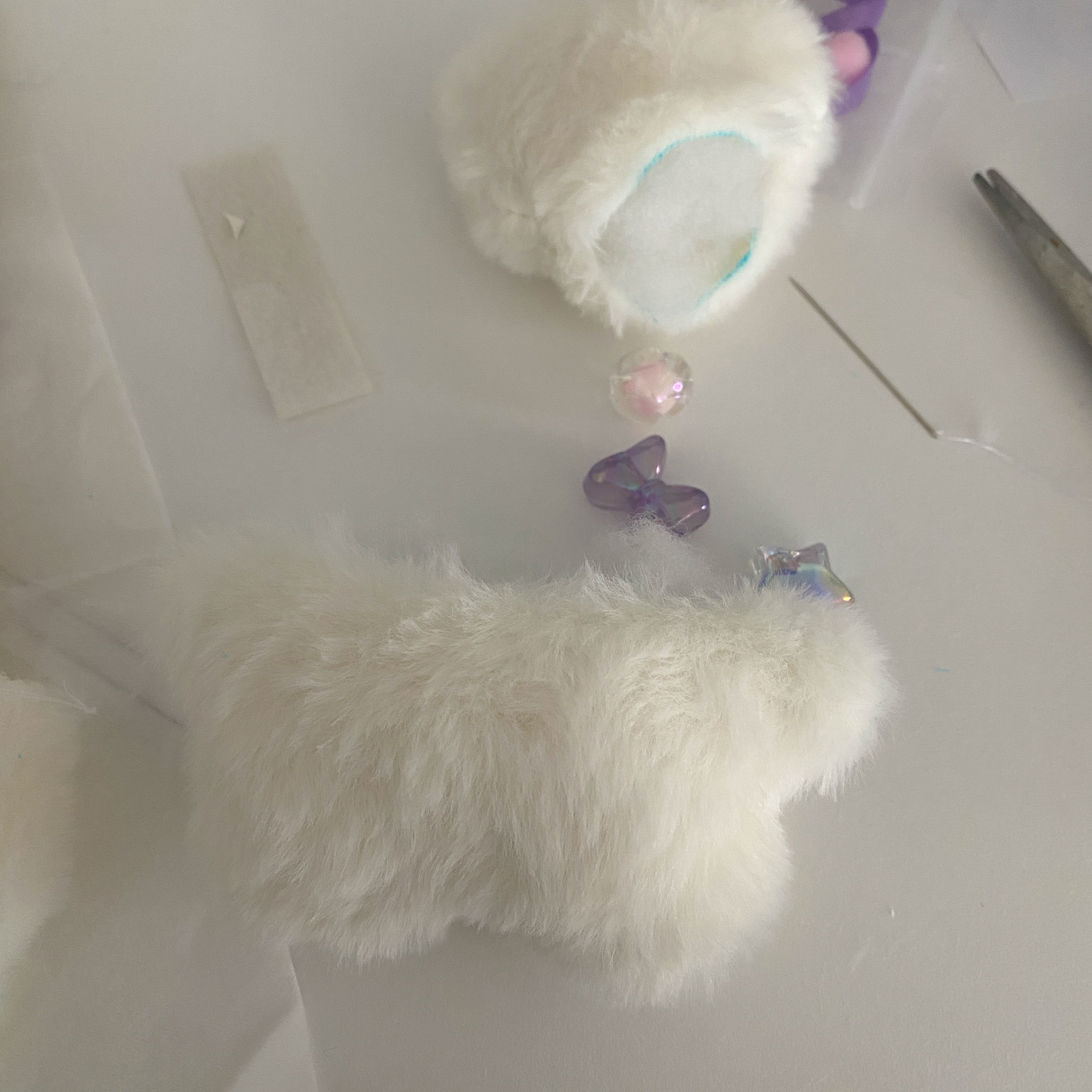 포함된 종이 도안을 열심히 오렸다. 여기서부터 시작한 것을 후회했다. 생각보다 꽤나 지겹다. 그러나 시작했으니 끝내 보기로 했다. 도안을 대고 천도 자르고 머리와 귀, 몸통을 바느질하고 뒤집어서 솜을 넣는다.