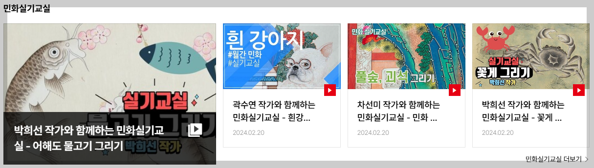 - 민화뉴스: 민화 관련 뉴스와 민화 강좌도 제공한다.
