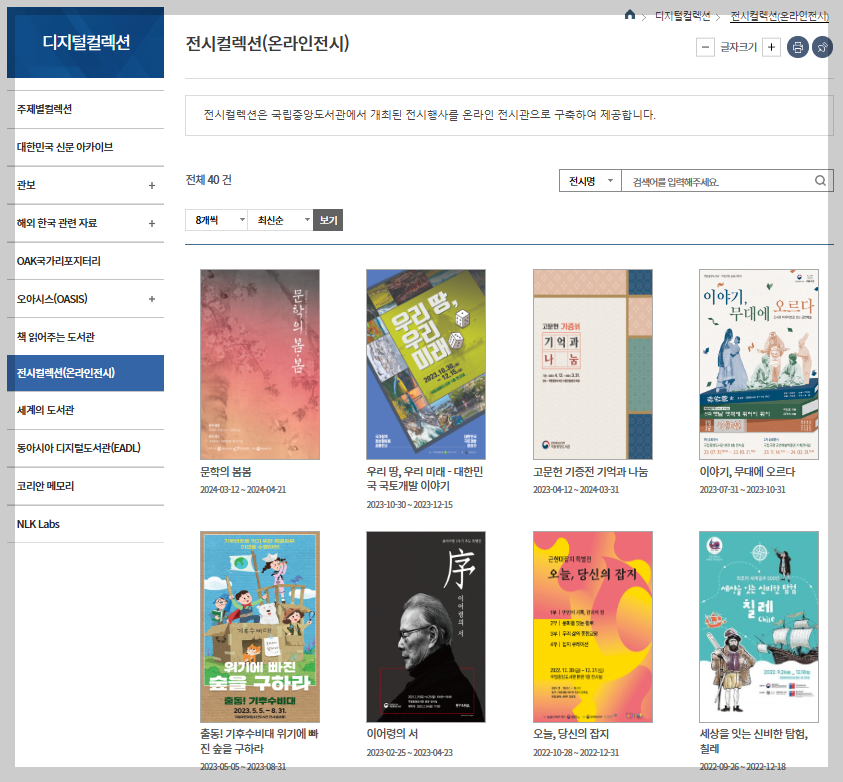 - 국립중앙도서관 온라인전시: 온라인으로 전시회를 관람하듯 작품을 감상할 수 있다. 마치 지도의 거리뷰를 보는 듯한 느낌이다. 자유롭게 전시회 뷰를 조정할 수 있다.