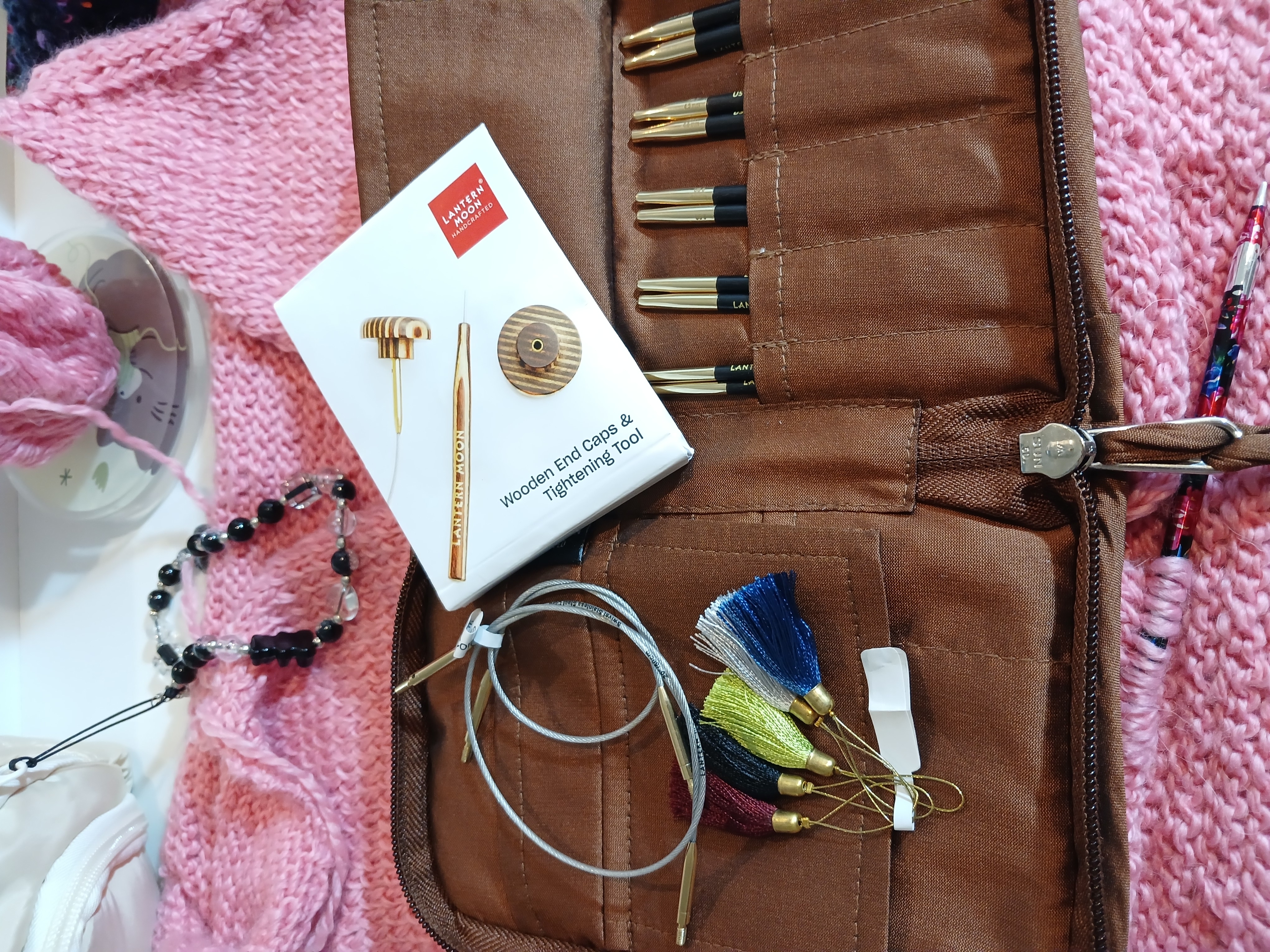 지퍼로 된 케이스를 열면 바늘들과 케이블, 마커, 엔드캡, 조임쇠 등이 들어있다. 테슬 마커 넘 귀엽다.